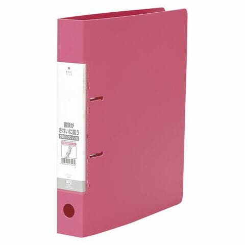 書類の抜き差しがしやすく、書類の端もそろうDリングファイル。表紙の裏側に便利なポケット、棚からスムーズに取り出しができるフィンガーホール付き。両手で開けるリングです。