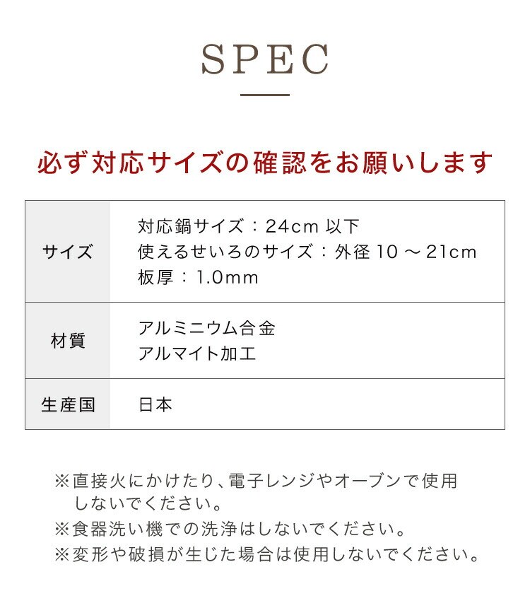 使えるせいろのサイズ:外径10~21cm