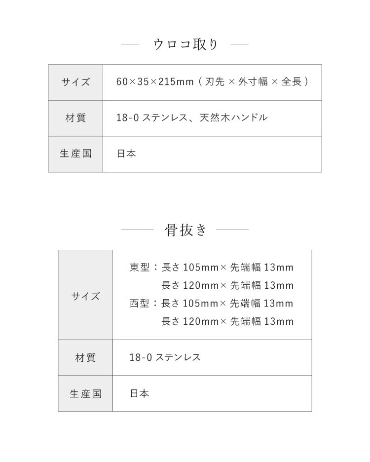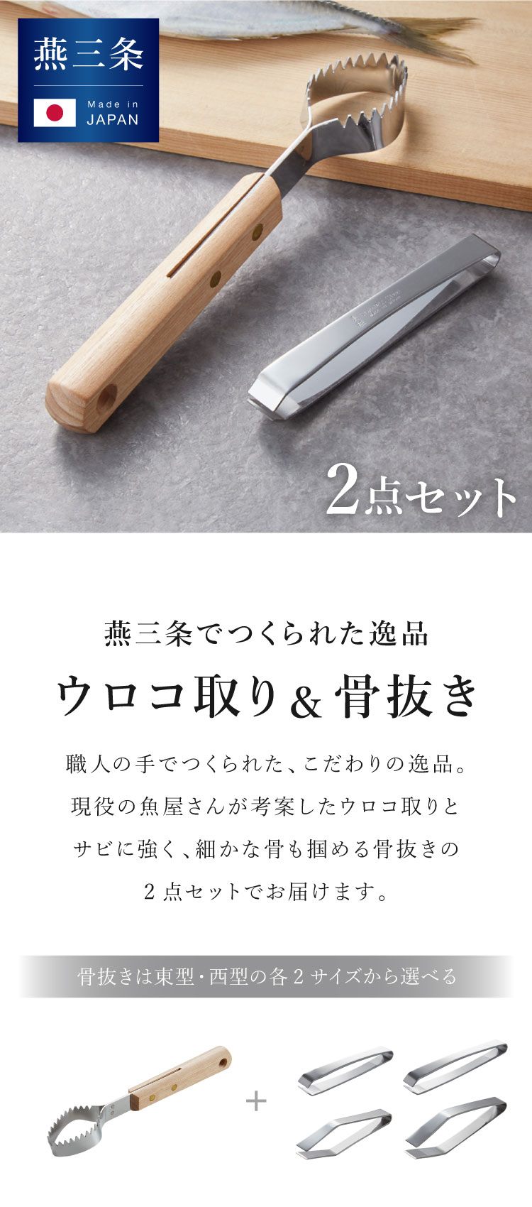 日本製 燕三条 ウロコ取り+骨抜きセット ステンレス 職人仕上げ 西型 東型 選べる2サイズ 105mm 120mm うろこ取り 鱗取り 鱗とり 魚捌き 魚さばき 釣り 新案ウロコ取り kan カンダ【送料無料】