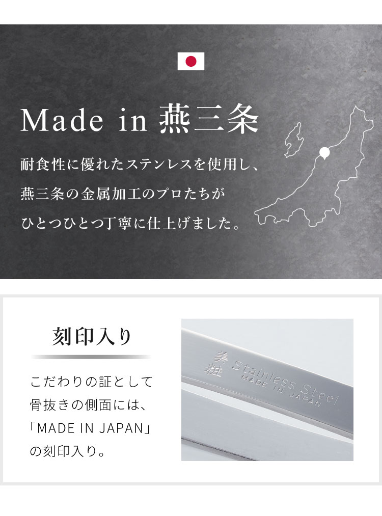 金属加工職人の街・新潟県燕三条地域で作られた骨抜きです。