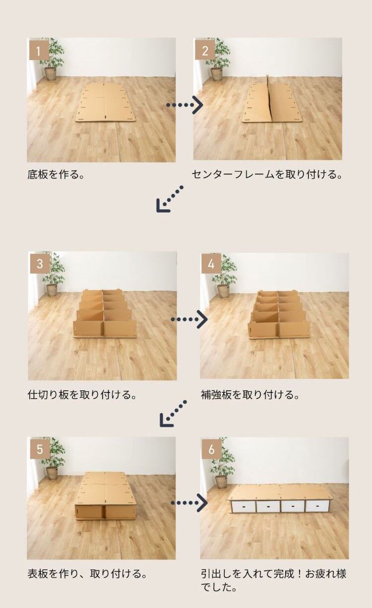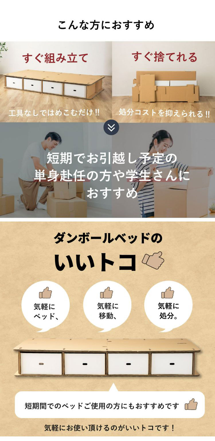 段ボールで作ったベッド。組立や処分もらくちんです。