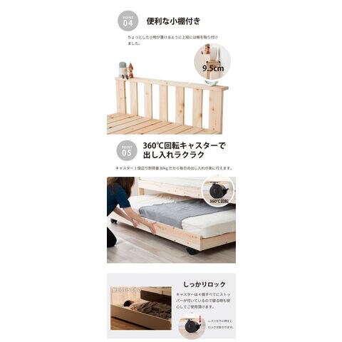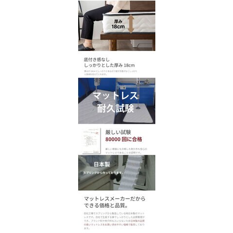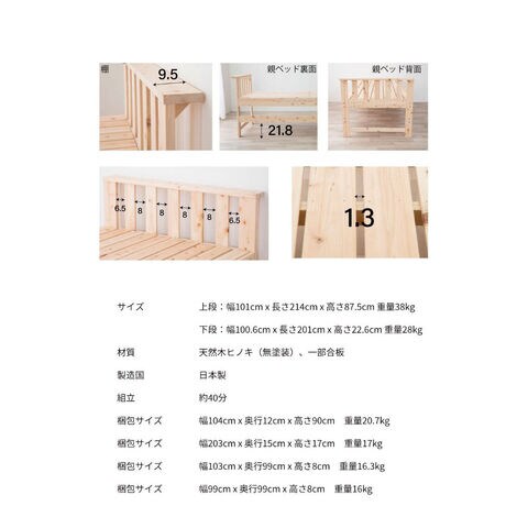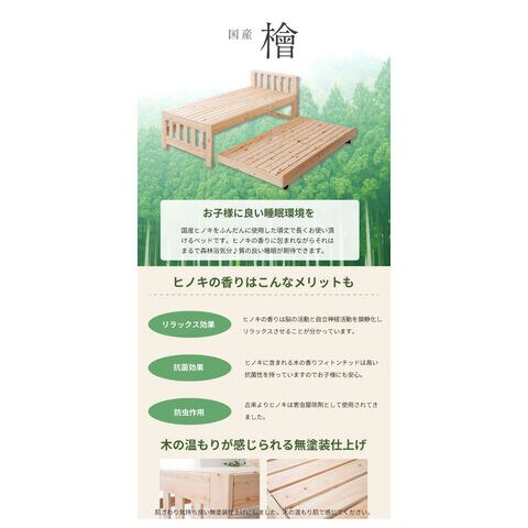 天然木ヒノキ、マットレス:ポリエステル100% ウレタン ポケットコイル