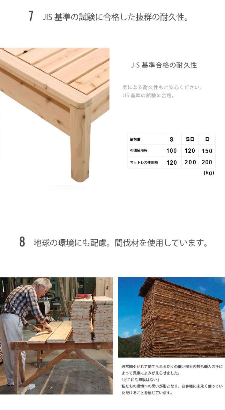 ベッドフレーム セミダブル 並べて使える島根県産・高知四万十産ひのきすのこベッド ベットフレーム ベッド ベット 寝具 インテリア 家具 TCB231 SD フレーム セミダブルサイズ SDサイズ【送料無料】