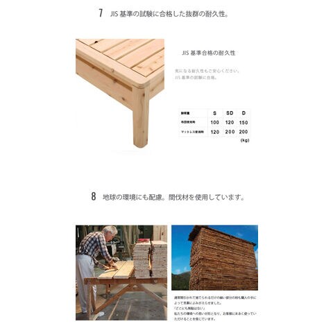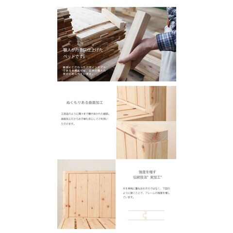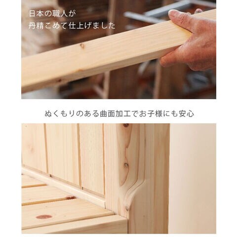 国産ヒノキを贅沢に使ったベッド。高さ3段階調整可能。ピッタリ並べて使用可能です。