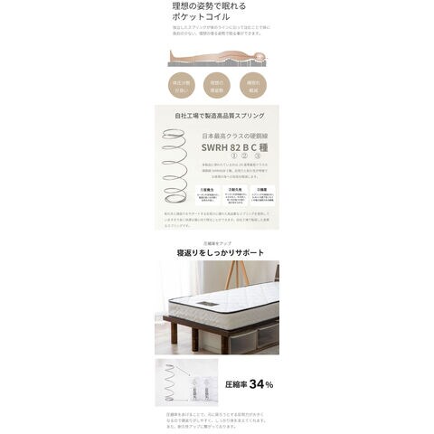 天然木ヒノキ、マットレス:ポリエステル100% ウレタン ポケットコイル