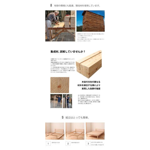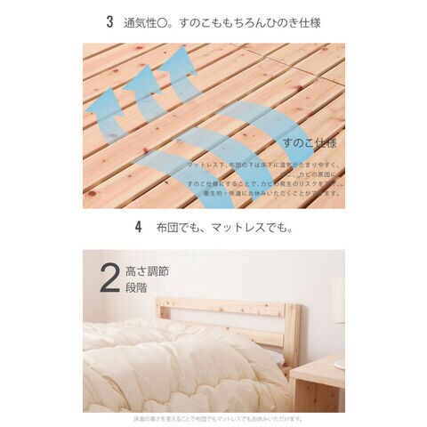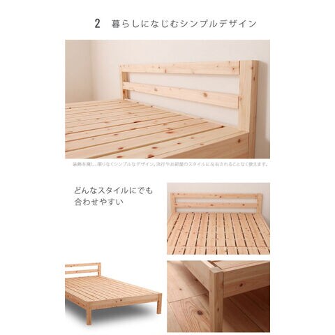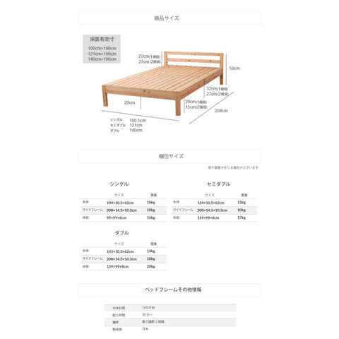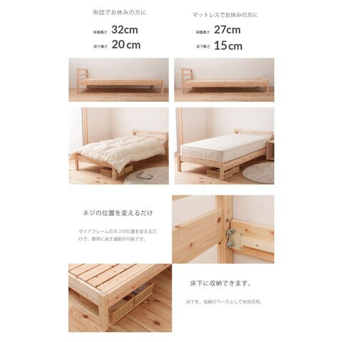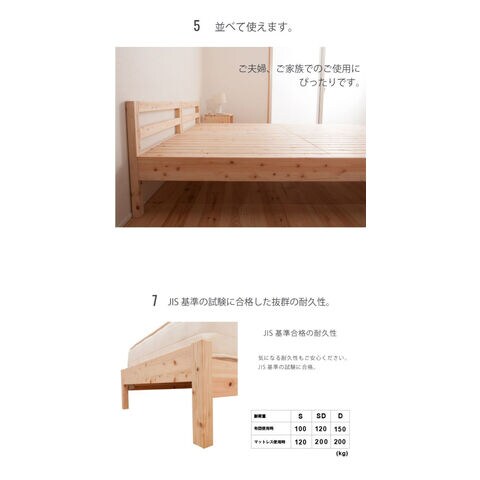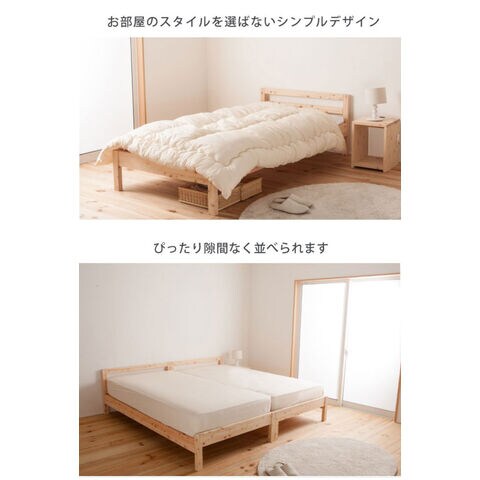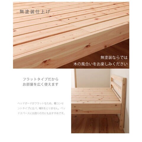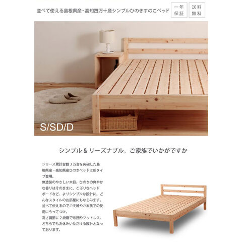 国産ヒノキを贅沢に使ったベッド。高さ2段階調整可能。ピッタリ並べて使用可能です。シンプルなデザイン