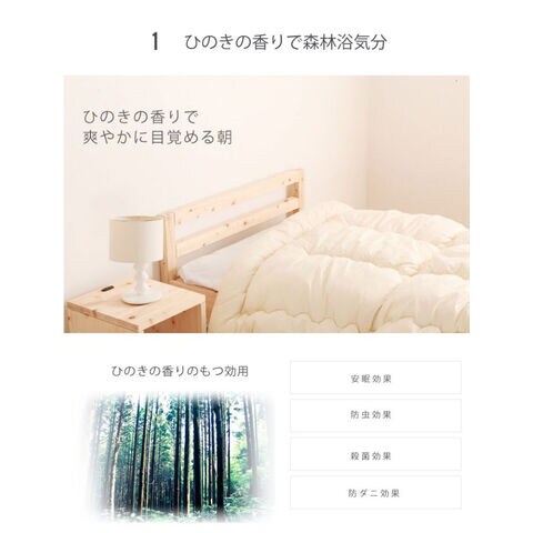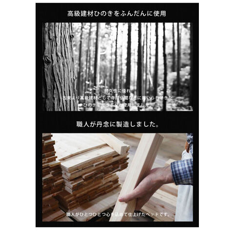 天然木ヒノキ、マットレス:ポリエステル100% ウレタン ポケットコイル