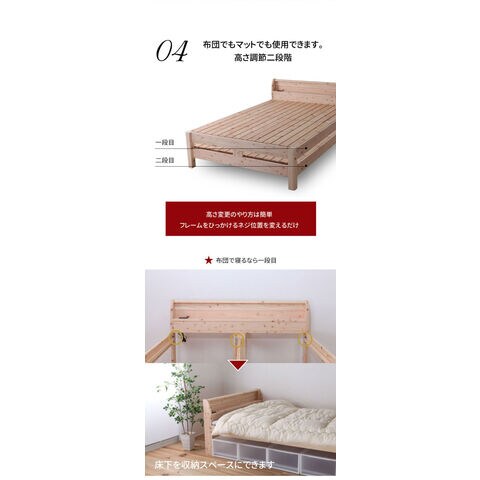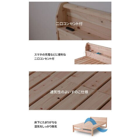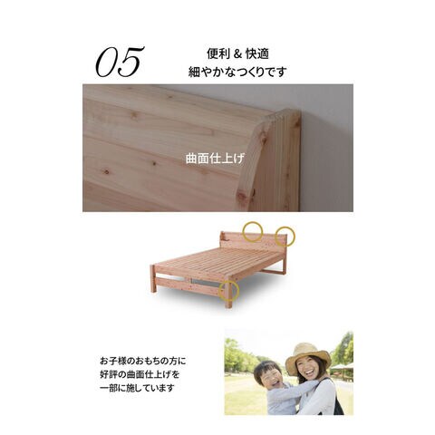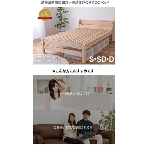 国産のヒノキ材を贅沢に使用したスノコベッドです。1000kgの荷重試験をクリアした頑丈設計のベッドです。