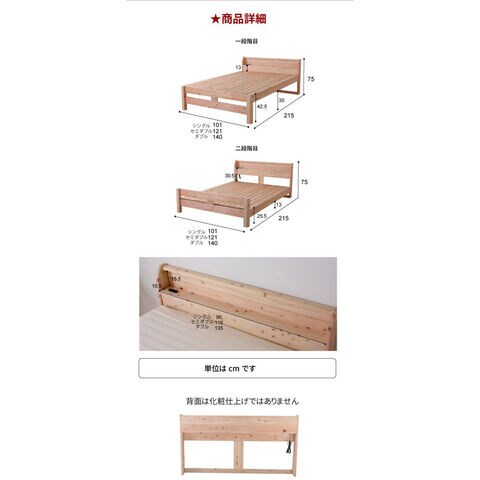 天然木ヒノキ、合板、マットレス:ポリエステル100% ウレタン ポケットコイル