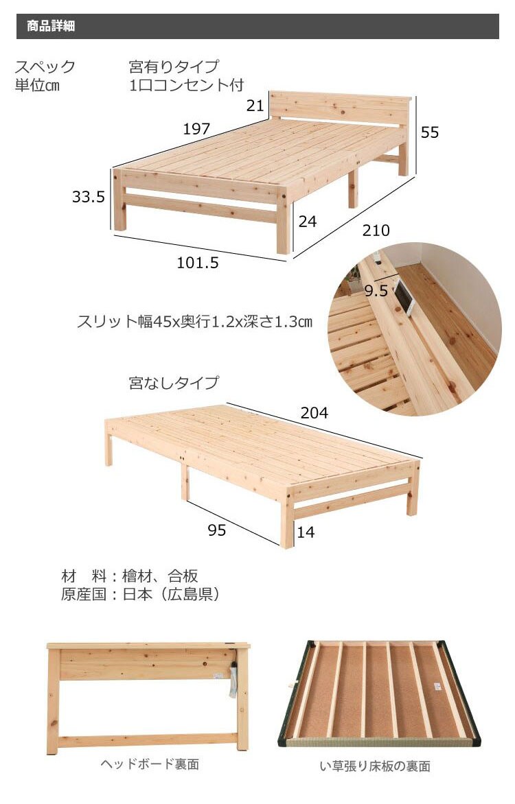 ベッドフレーム シングル 天然木材檜ベッド 繊細すのこ ベットフレーム ベッド ベット 寝具 インテリア 家具 TCB272FF 繊細 シングルサイズ Sサイズ【送料無料】