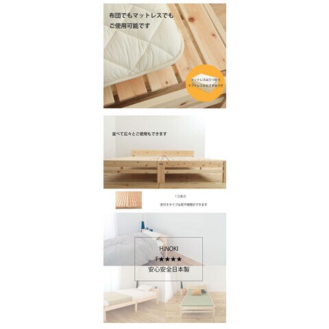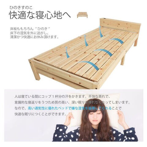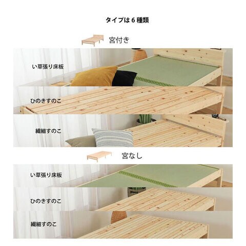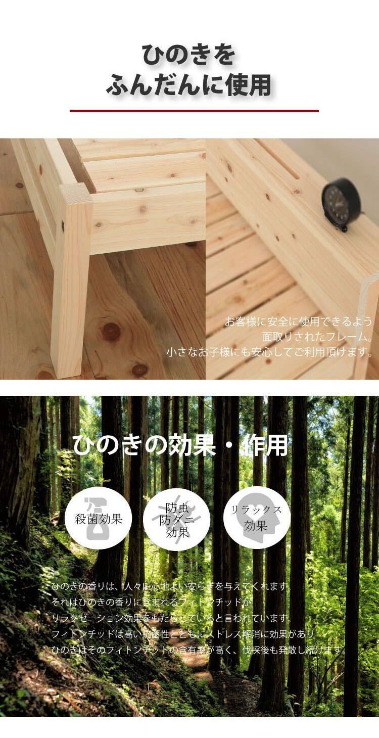 国産のヒノキ材を贅沢に使用したスノコベッド。コンパクトな宮無しタイプ