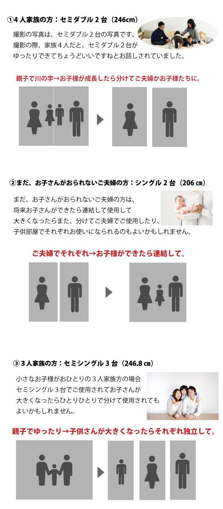 国産のヒノキ材を贅沢に使用したローベッド。金具でピッタリ連結できるので家族で川の字で寝る事ができます
