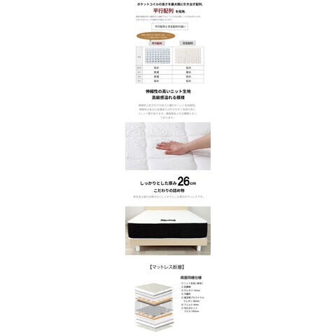 天然木ヒノキ、マットレス:ポリエステル100% ウレタン ポケットコイル