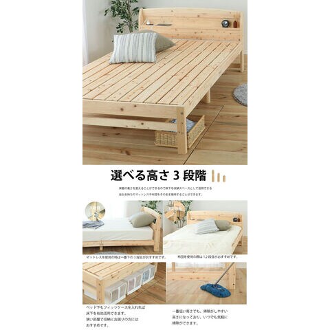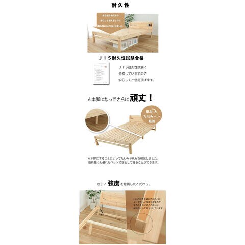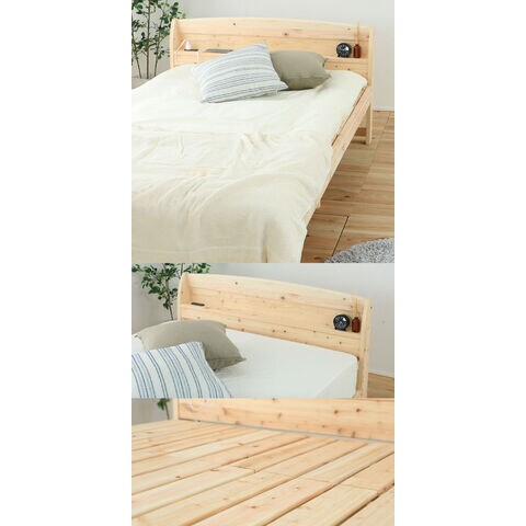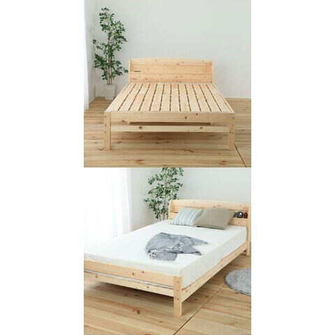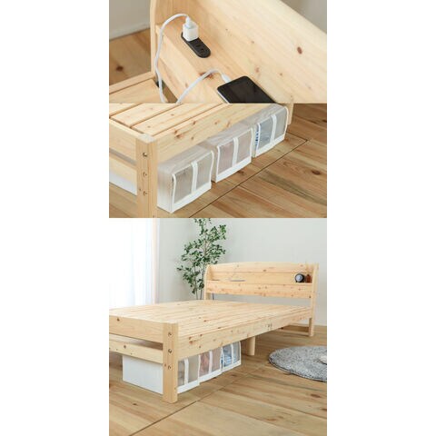 便利な棚コンセント付きのヒノキベッド。佐川急便で配送可能。2口コンセント付き。1500W