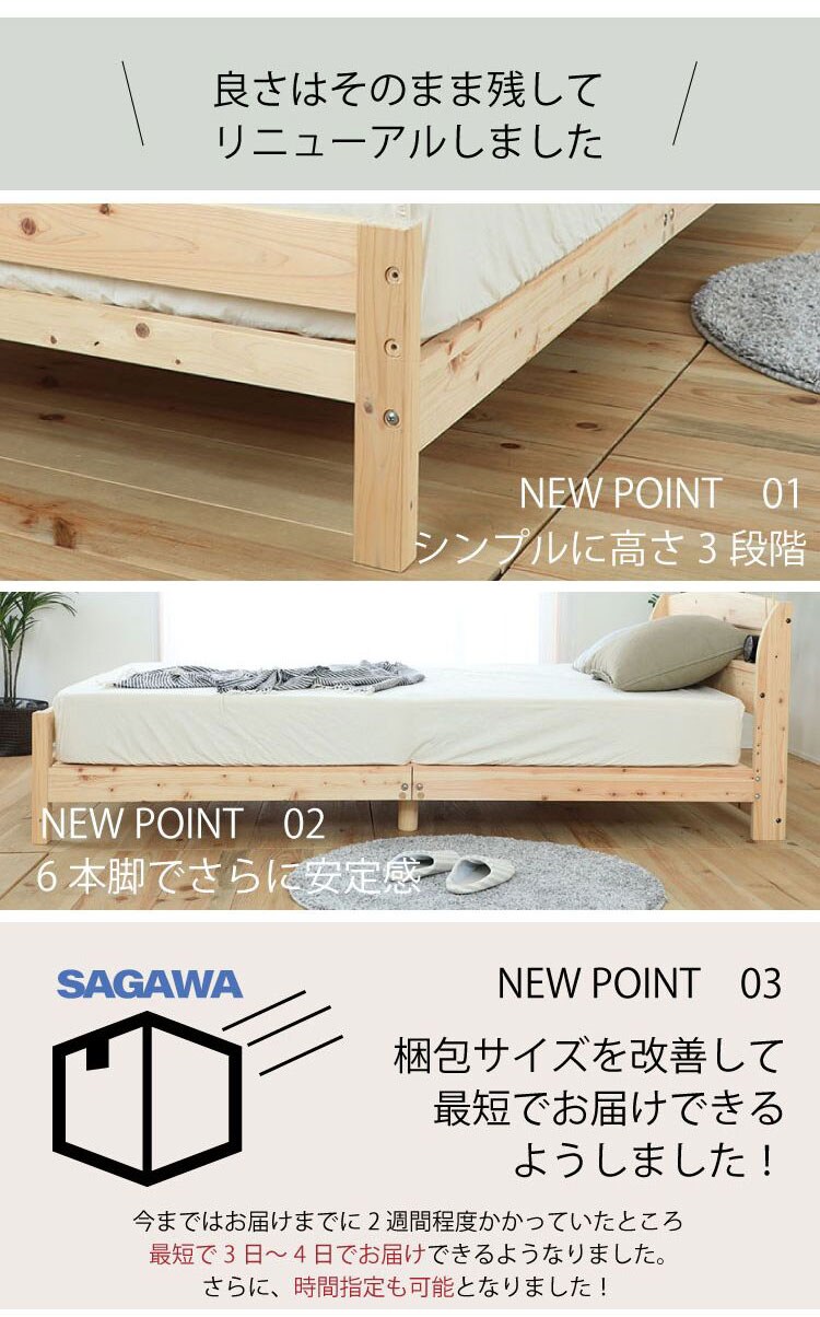 ベッドフレーム セミダブル 高さが選べるすのこベッド い草床板 ベットフレーム ベッド ベット 寝具 インテリア 家具 TCB534 SD い草床板 セミダブルサイズ SDサイズ【送料無料】