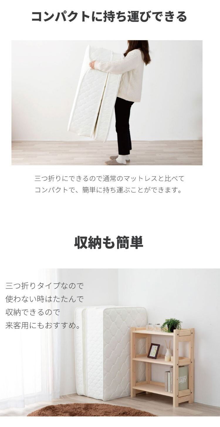 三つ折りに畳んで収納に便利なポケットコイルマットレス
