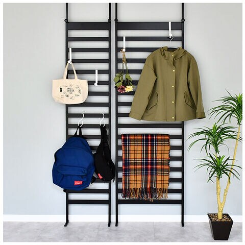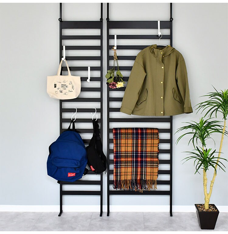 2種類の付属フックに服やカバン等を引っ掛けて収納することができます。