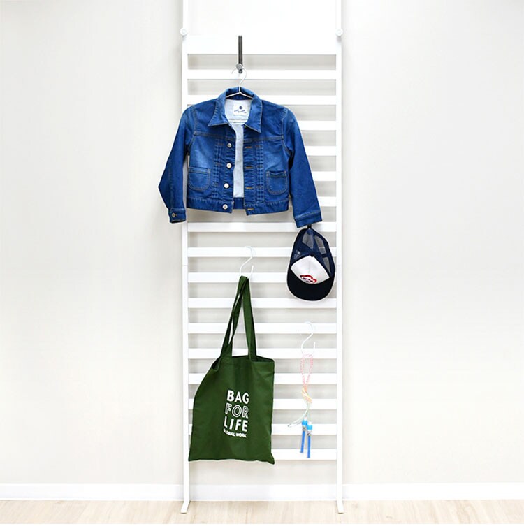 2種類の付属フックに服やカバン等を引っ掛けて収納することができます。