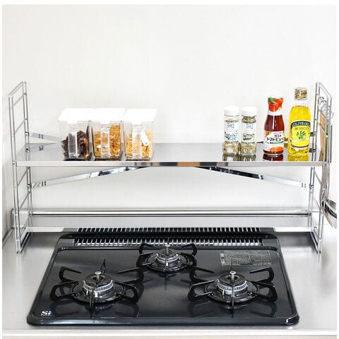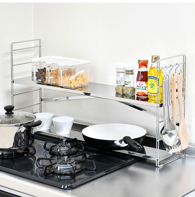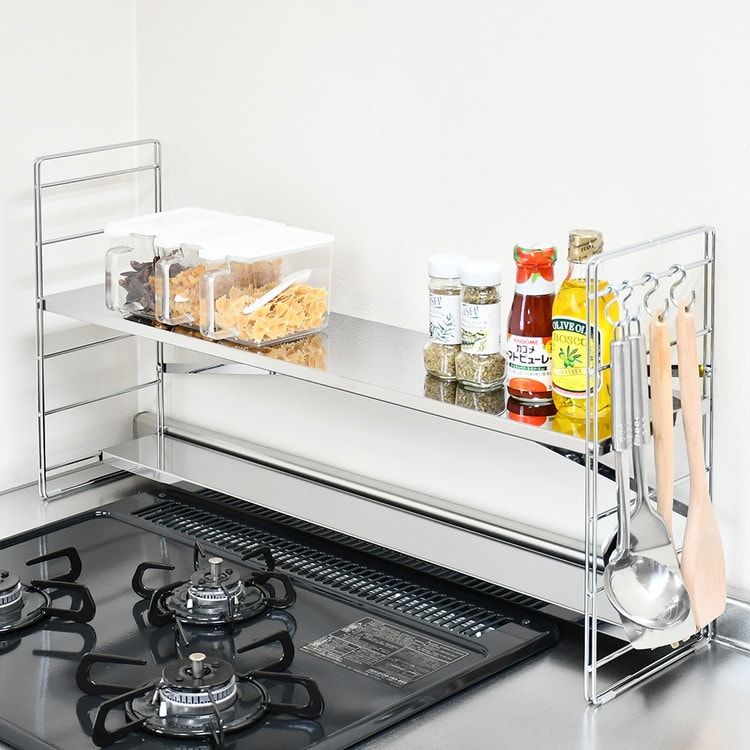 日本製 燕三条 排気口カバー付き コンロ奥多機能ラック 幅80cm 2段 コンロ幅75用 コンロ奥ラック ステンレス棚 調味料ラック スパイスラック キッチンラック キッチン収納【送料無料】