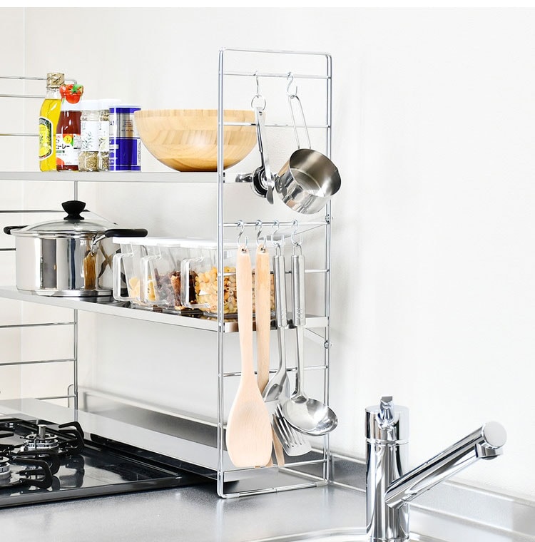 S字フックが付いているためサイドに調理器具などを引っ掛ける事ができ、料理の際にすぐ手が届き使うことができるため便利です。