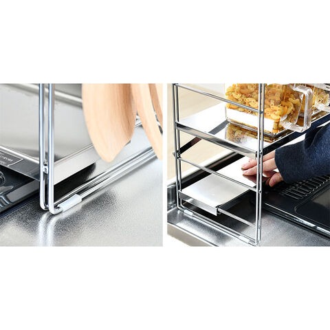 コンロ幅75cm用。コンロ奥ラックと排気口カバーが一緒になった多機能ラック。