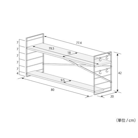 棚は7cmピッチで調整が可能です。ビス止めではないため簡単に取り外しができ高さを変えることができます。