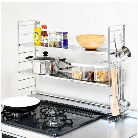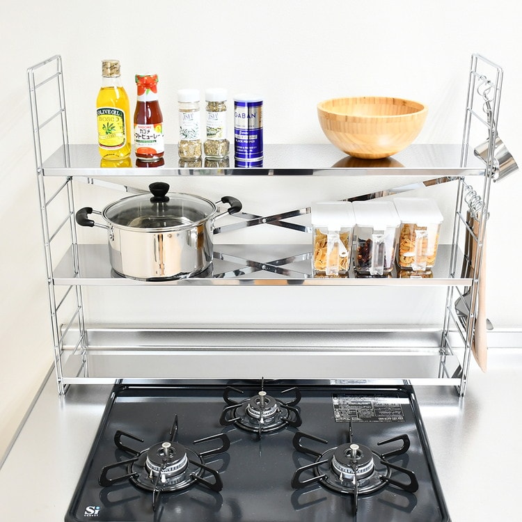日本製 燕三条 排気口カバー付き コンロ奥多機能ラック 幅80cm 3段 コンロ幅75用 コンロ奥ラック ステンレス棚 調味料ラック スパイスラック キッチンラック キッチン収納【送料無料】