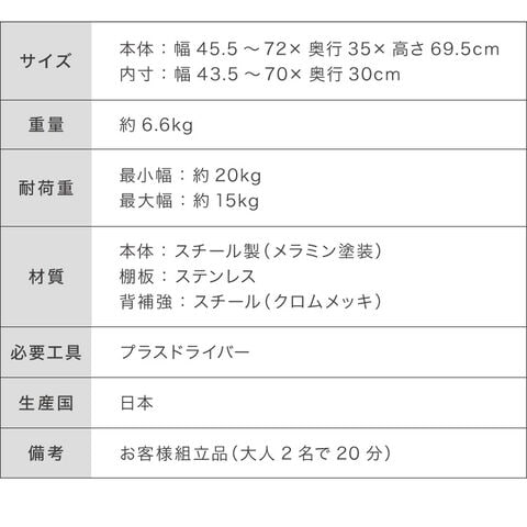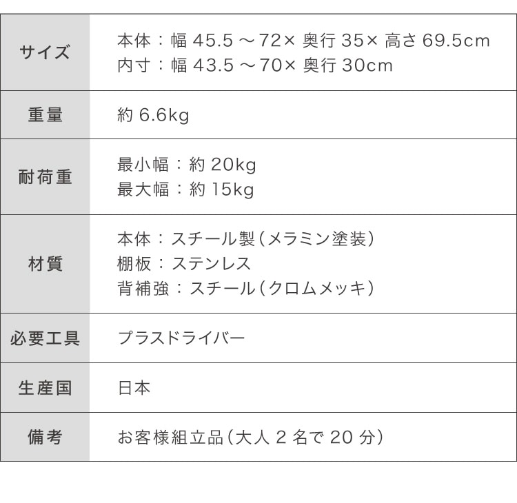 内寸:約幅43.5~70cm×奥行30cm