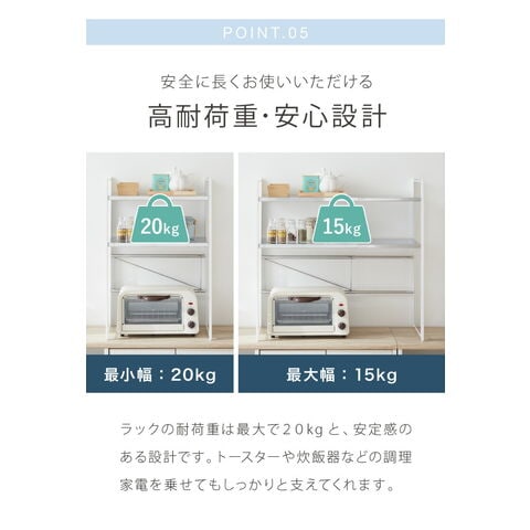 レンジやオーブントスーターなどキッチンに置く小型家電周りが収納スペースに。