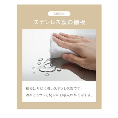 棚板はステンレスなので、お手入れも簡単です。