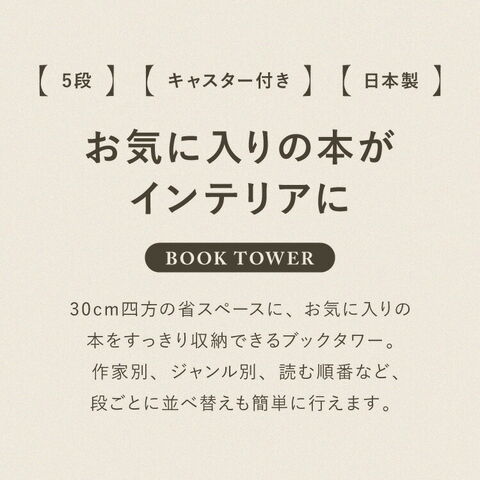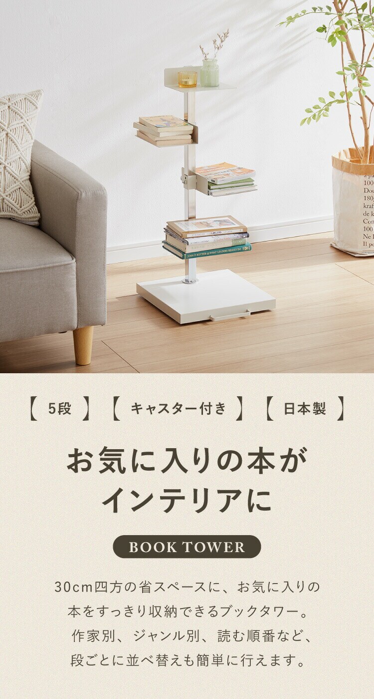 日本製 ブックタワー 5段 アイボリー おしゃれ 隠しキャスター付き 棚板高さ調節 積ん読 本棚 シェルフ タワー マガジンラック コミック 文庫本 積読 ディスプレイ サイドテーブル【送料無料】のレビュー