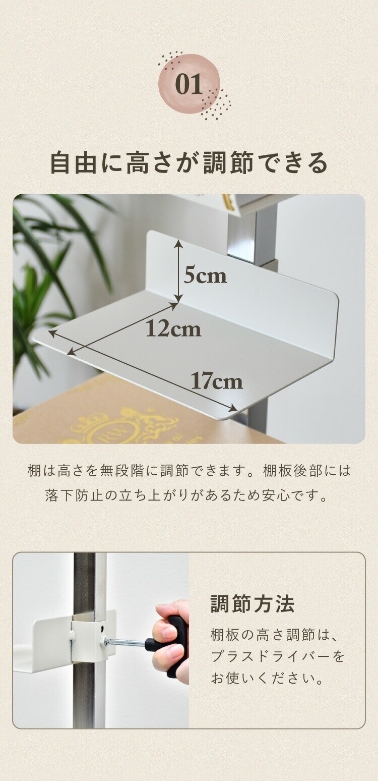 ドライバーでゆっくりと締め付けていき、ビスの先端が支柱に触れてから軽く増し締めする程度としてください。