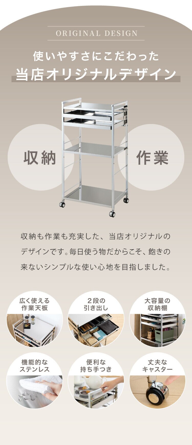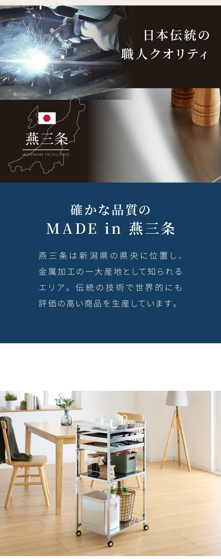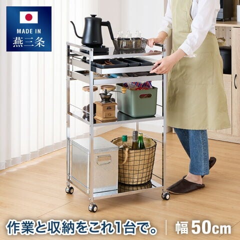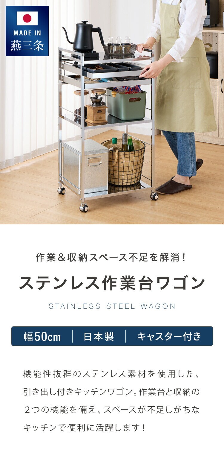 日本製、国産、燕三条、ステンレス、作業台、ワゴン、キッチン収納、キッチンワゴン、棚、ラック、ステンレスワゴン、スリム、作業台、調理台、業務用、家庭用、おしゃれ、韓国インテリア、シルバー
