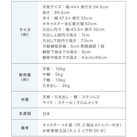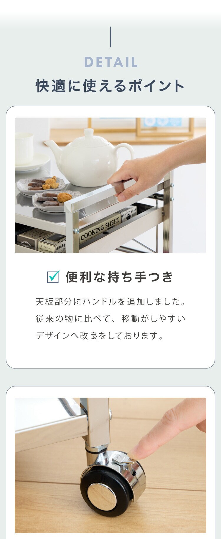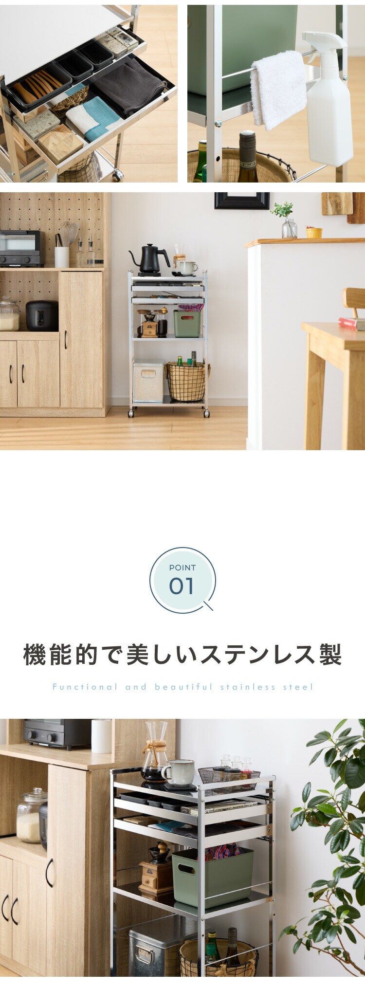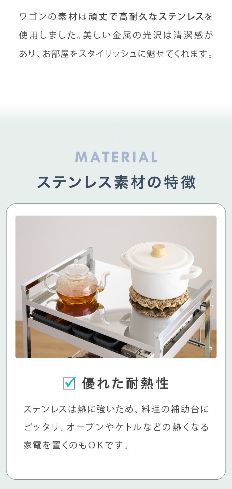 日本製、国産、燕三条、ステンレス、作業台、ワゴン、キッチン収納、キッチンワゴン、棚、ラック、ステンレスワゴン、スリム、作業台、調理台、業務用、家庭用、おしゃれ、韓国インテリア、シルバー