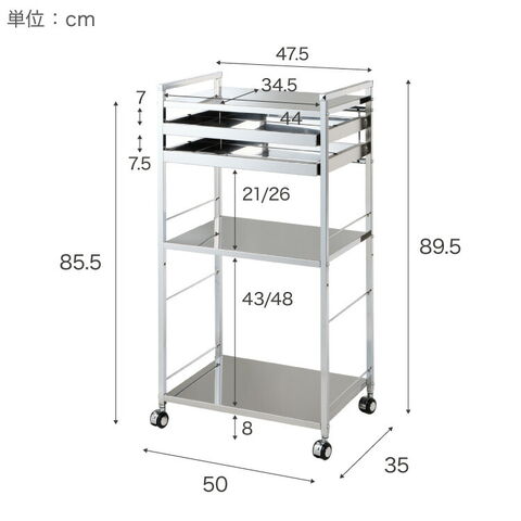 外寸:幅47.5×奥行35cm ※キャスター含む最大幅50cm