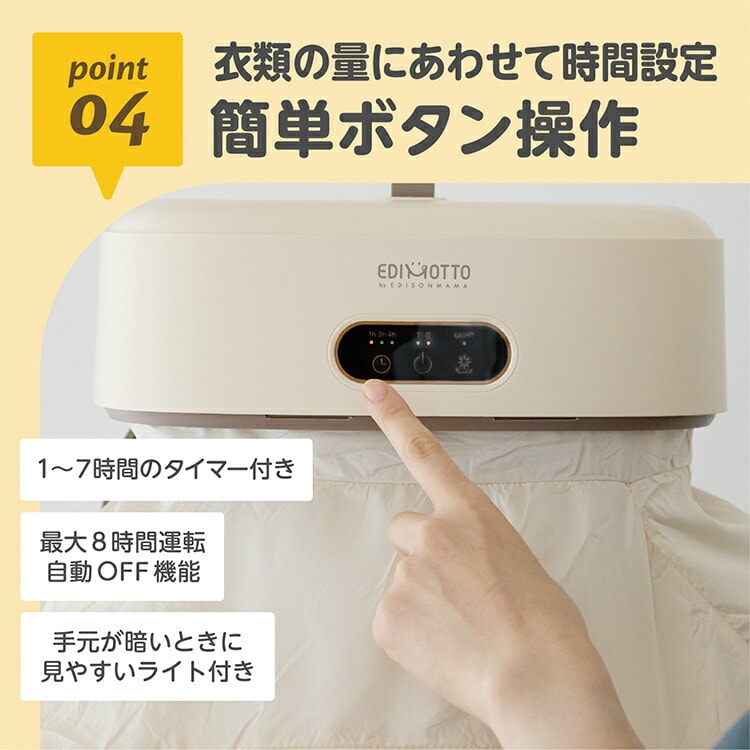 エジソンママ コンパクト衣類乾燥機 小型 A4サイズ 9着 少量 ベビー服 カバー付 持ち運び ポータブル 携帯 移動式 タイマー 自動オフ 出張 掛けるだけ 簡単 コンセント 省エネ KJ420619 エジソン販売
