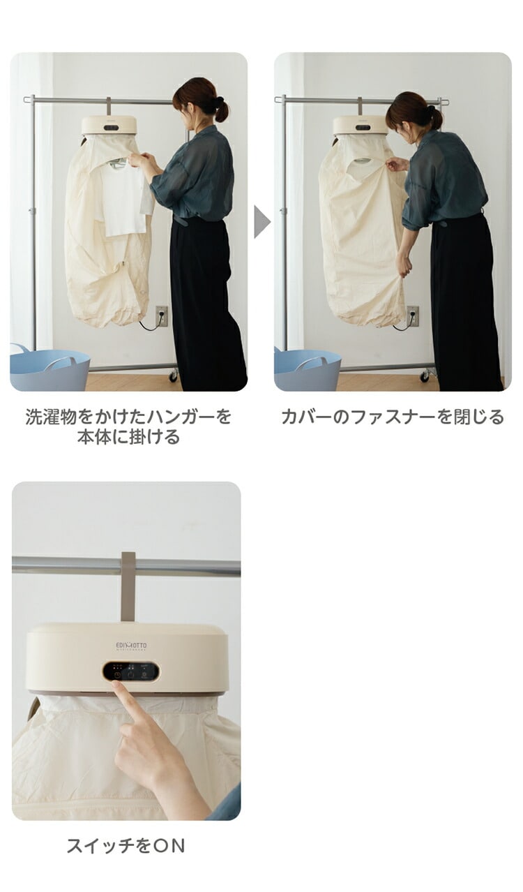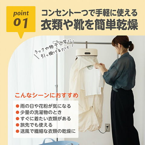 【掛けるだけで簡単乾燥、必要なときにすぐ使える衣類乾燥機】