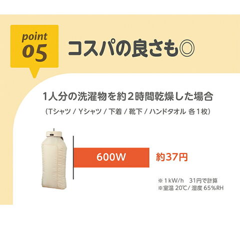 手軽に使いたいものだから、コスパも気になりますよね。一般的な乾燥機と比較しても圧倒的に電気代を抑えられるのもうれしいポイントです。