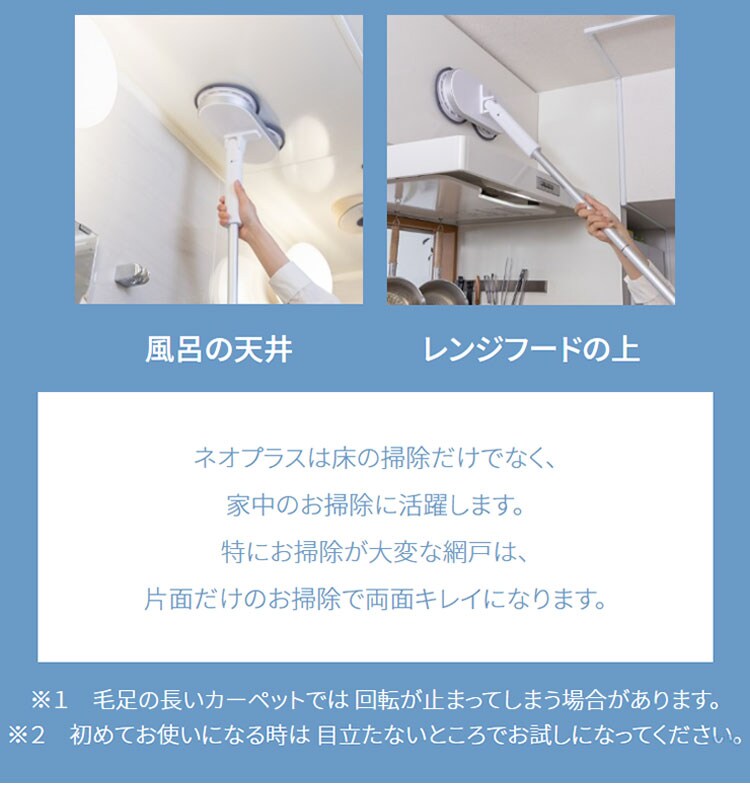 ・電動アシストで立ったままの床の水拭き掃除ができる。