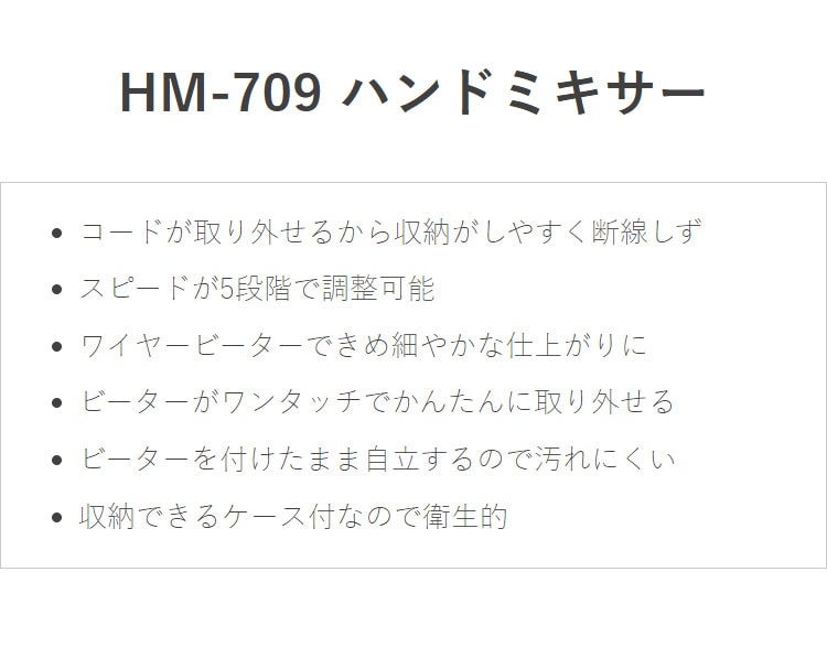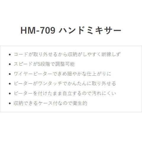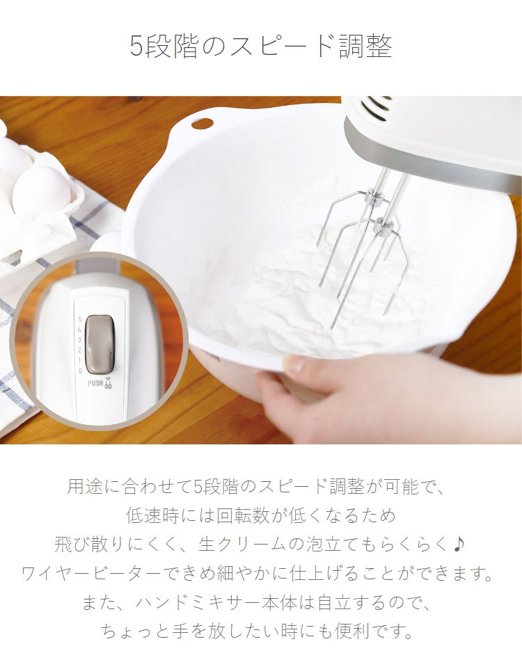 ドリテック ハンドミキサー コードが外せてすっきり収納 電動ミキサー HM-709 泡立て器 ふんわり生クリーム ケーキ ホイップ お菓子作り 製菓 バレンタイン かわいい おしゃれ dretec【送料無料】
