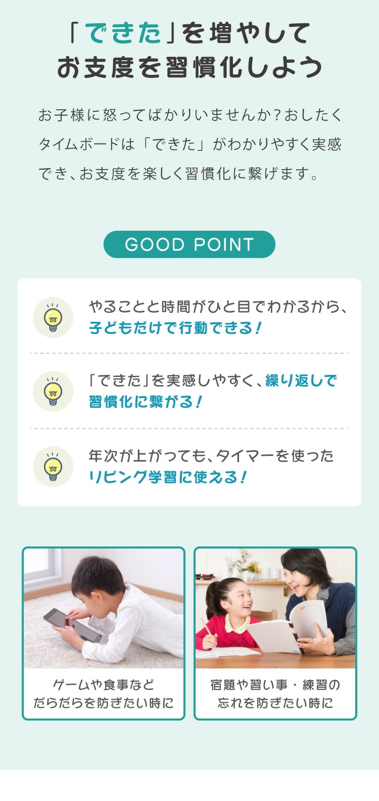 保育園、小学校のお支度管理や、勉強などの時間管理におすすめです。