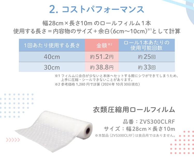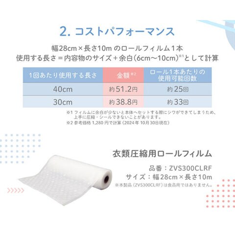 ■衣類用圧縮シーラー VS-300WT(別売)で使えるロールフィルムです。