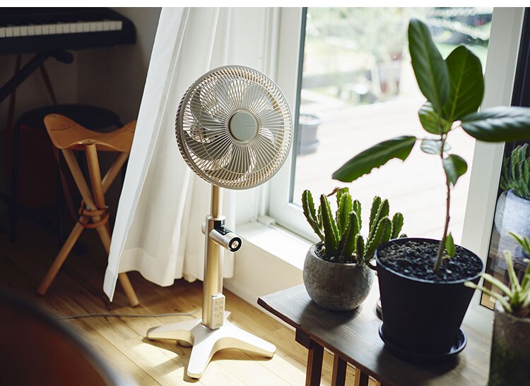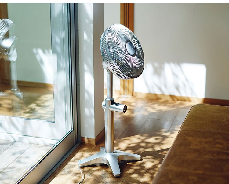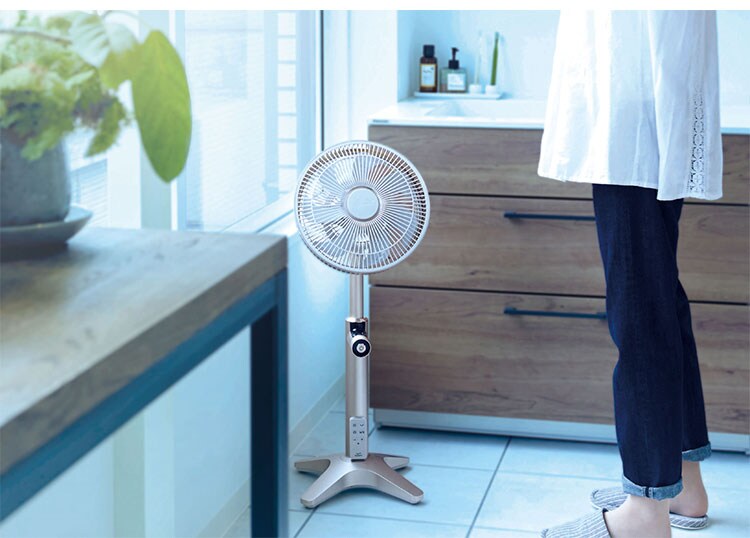 DCモーター採用でお財布にもやさしい扇風機。風の質を高めると同時に、1時間あたりの電気代が最小約0.05円というエコ運転を可能にしました。