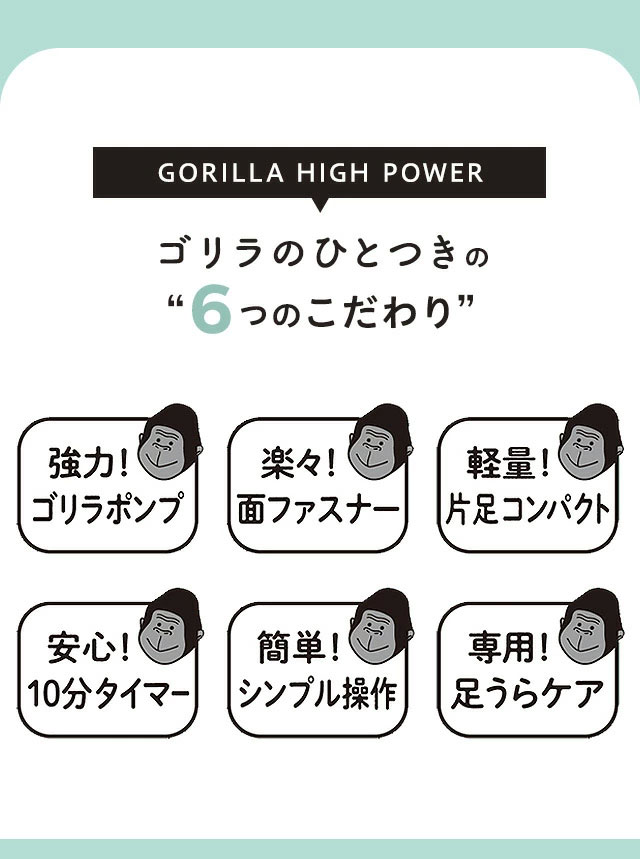 ピンポイントでぐーっと押し込む「ひと突きパーツ」が痛きもちイイ!ゴリラのハイパワーシリーズの強カポンプとの組み合わせで足うらをすっきりとケアします。