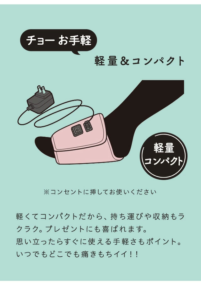 軽くてコンパクトだから、持ち運びや収納もラクラク。プレゼントにも喜ばれます。思い立ったらすぐに使える手軽さもポイント。いつでもどこでも痛きもちイイ!!