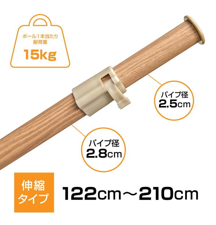 (竿1本当)122-210×4×4.5cm、パイプ径2.8/2.5cm