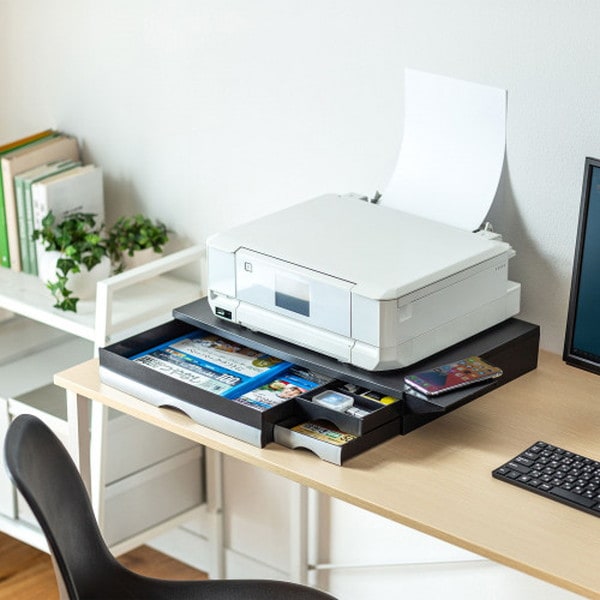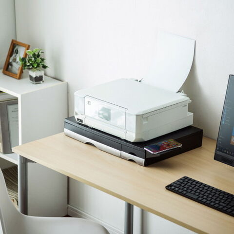 ●引き出しが付いたプリンターステーションです。インクジェットプリンター、インクジェット複合機、FAXなどの下のスペースを効率よく活用できます。