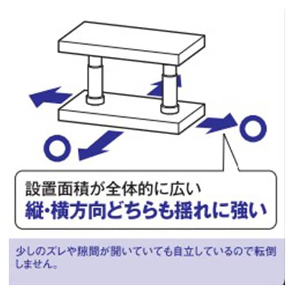 ●設置面を広くする事によって揺れ方向に関係なく安定し、天井側や家具側にかかる負担を軽減