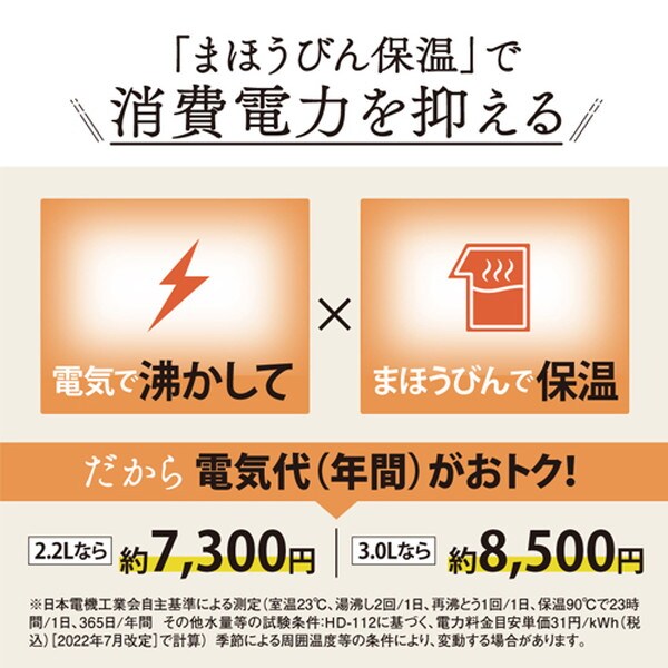 ●電気とまほうびん構造を組み合わせてかしこく保温することで、消費電力量を抑えます。