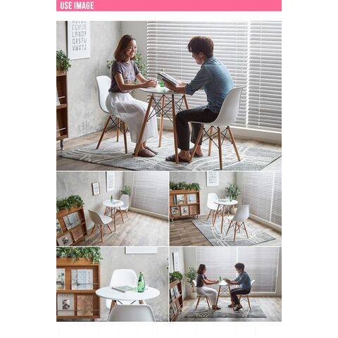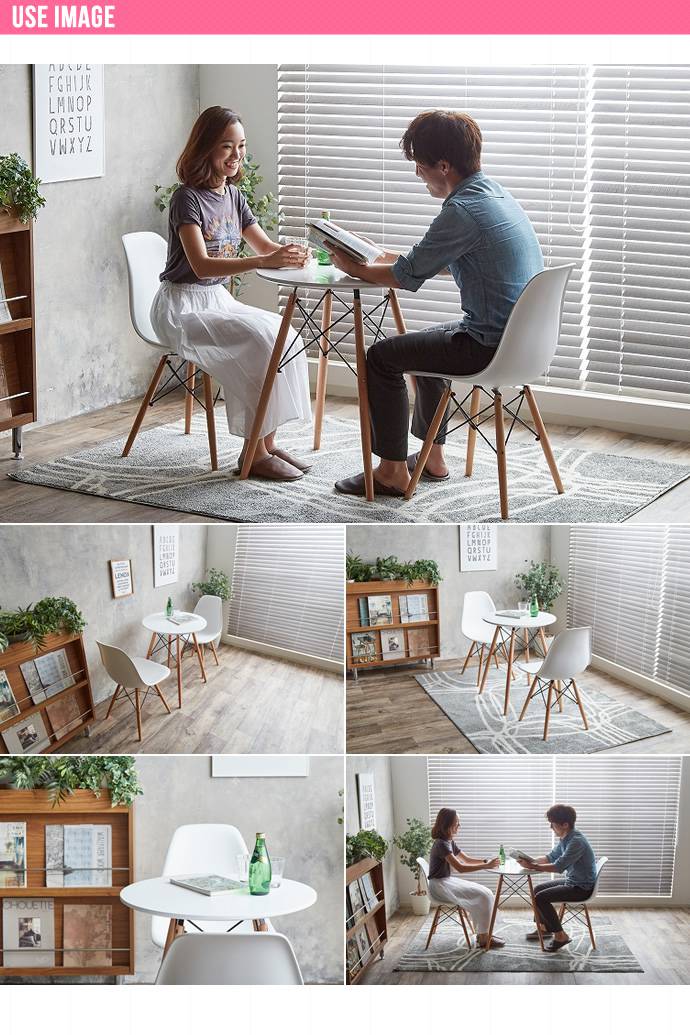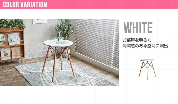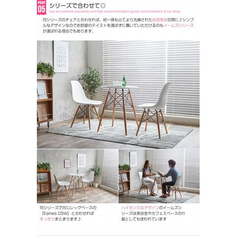 清潔感のあるクリアなホワイトカラーが印象的な天板とイームズシリーズならではのダウェルレッグとの組み合わせが、